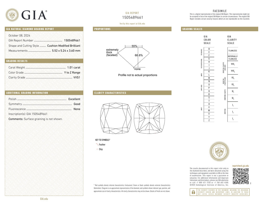 GIA Certified 1.01 CT Cushion Diamond Y To Z Color Natural Diamond VVS1 Clarity (5.52 MM)