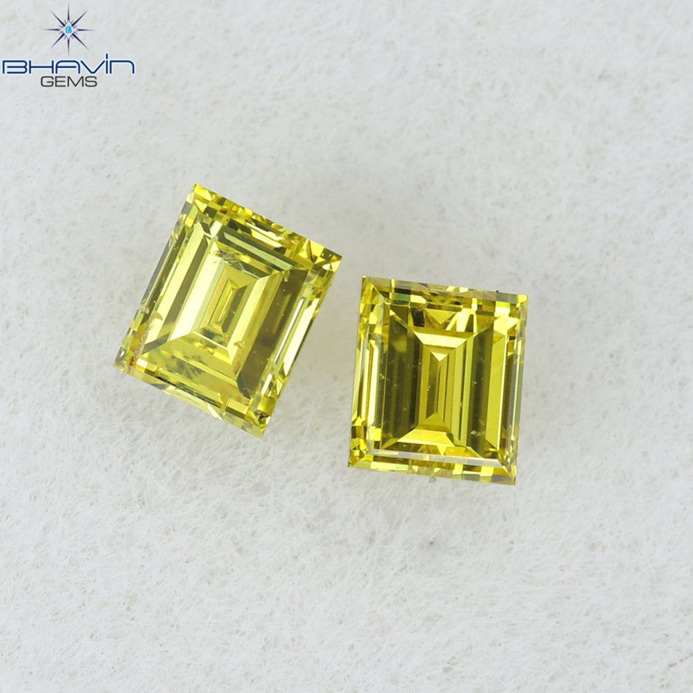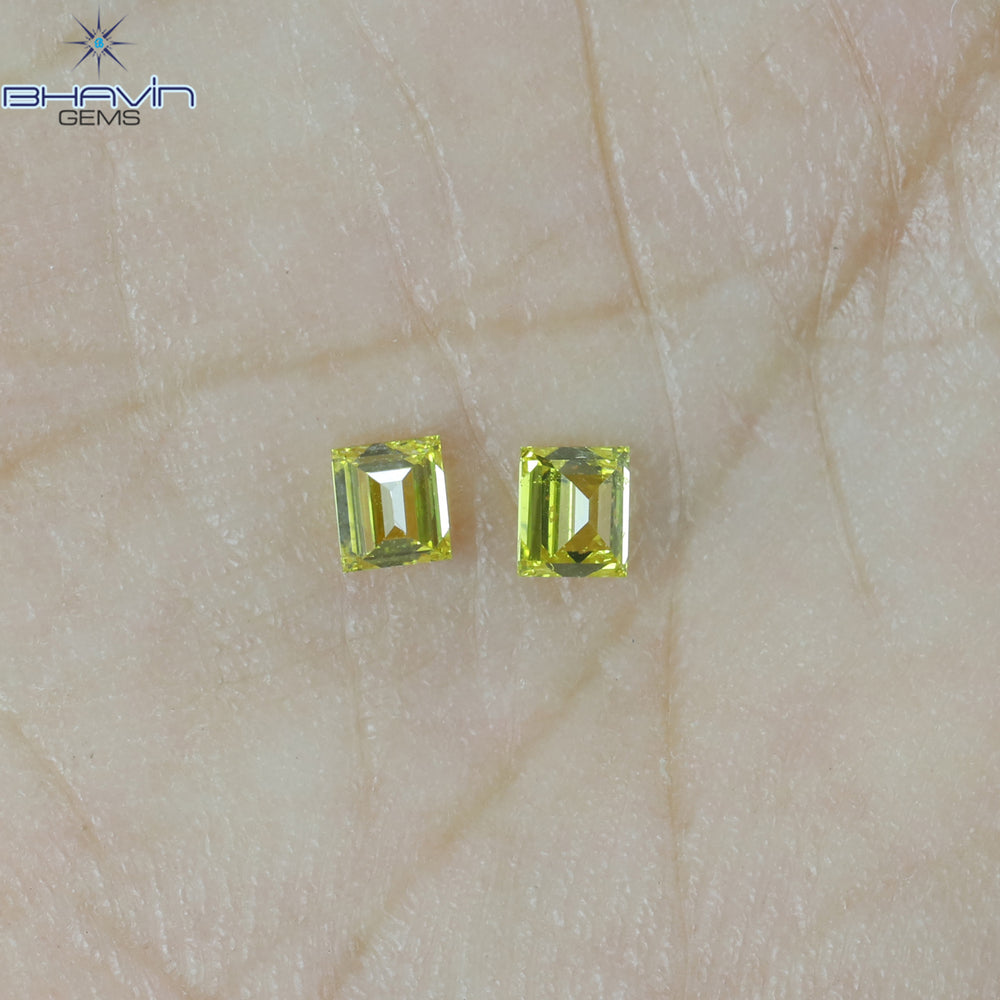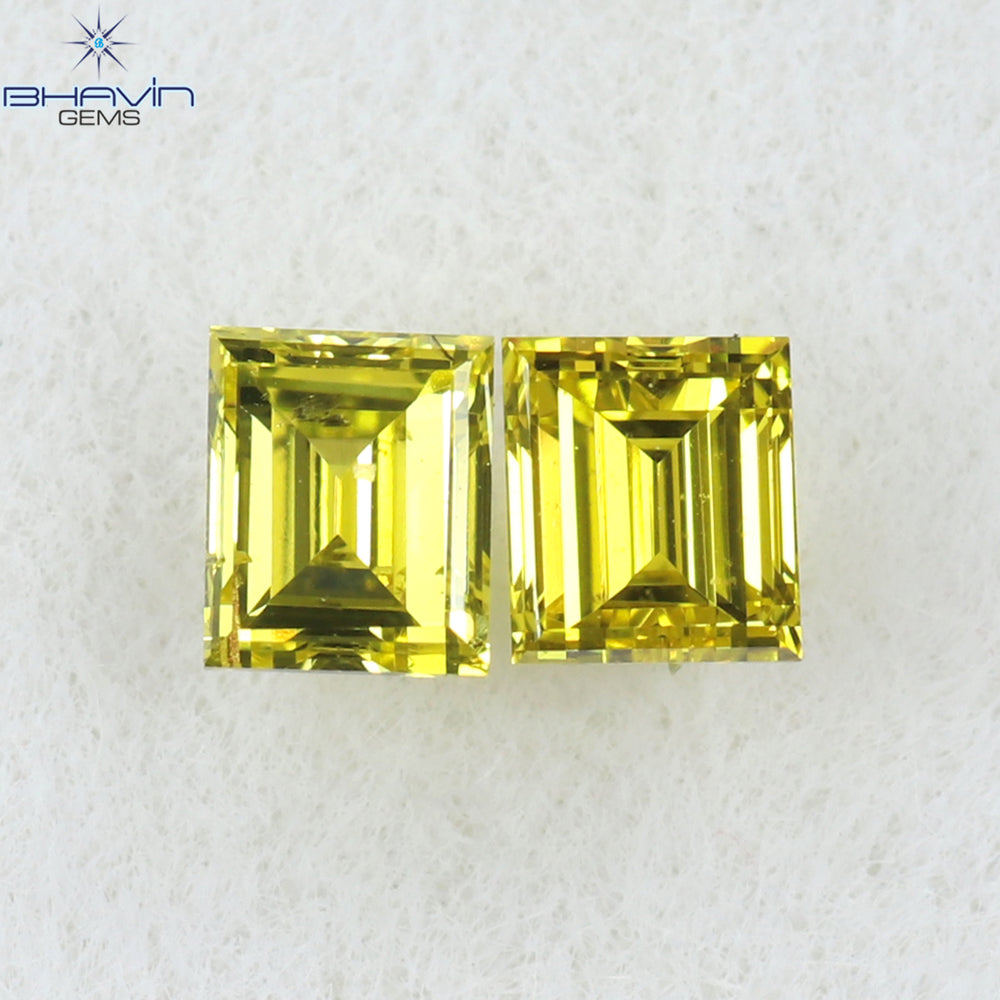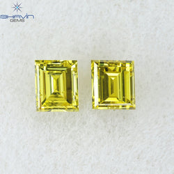 0.22 CT/2 Pcs Square Cut Natural Diamond Enhanced Yellow Color VS2 Clarity (2.69 MM)