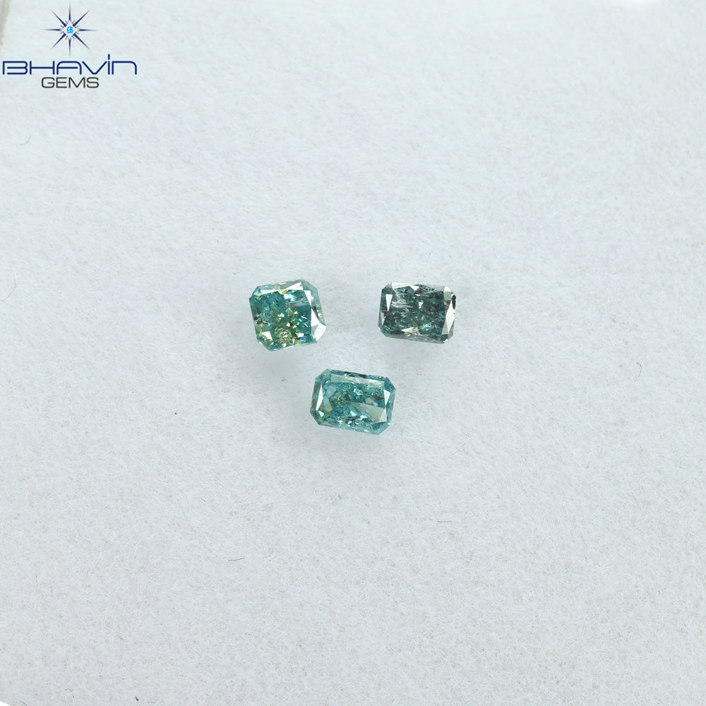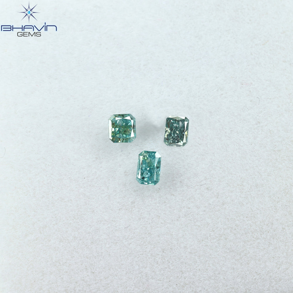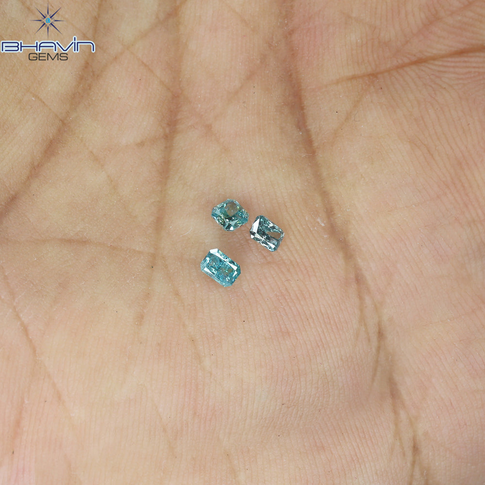 0.29 CT/3 Pcs Radiant Diamond Blue Color Natural Diamond Clarity SI2 (3.18 MM)
