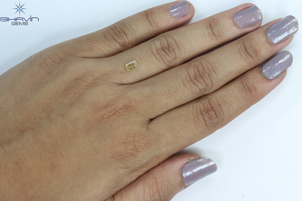 0.38 CT Emerald Shape Natural Diamond Orange Color I2 Clarity (5.17 MM)