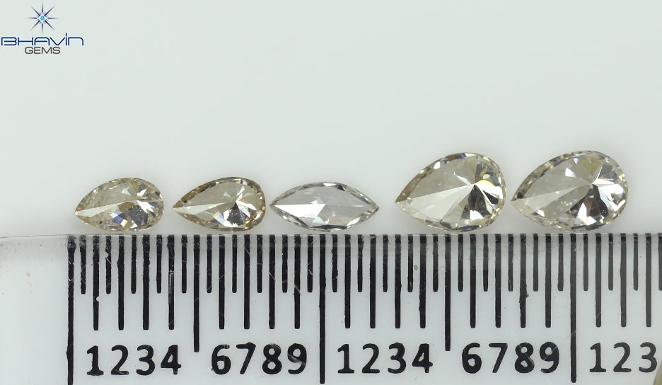 0.57 CT/5 Pcs Pear Shape Natural Diamond White(K) Color VS2 Clarity (4.40 MM)