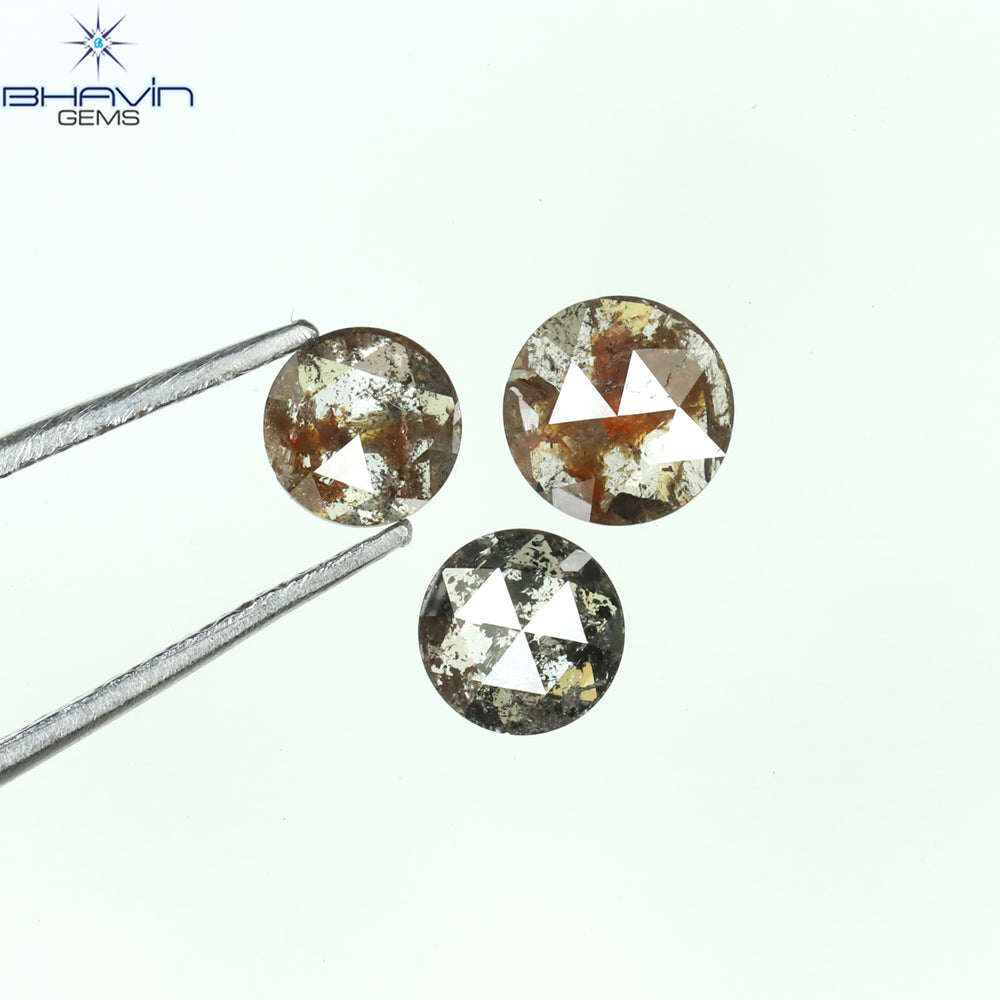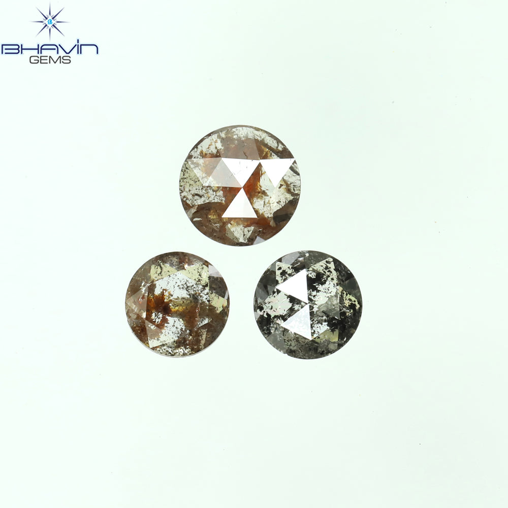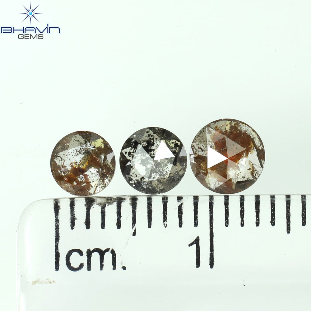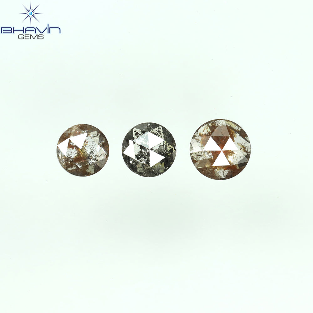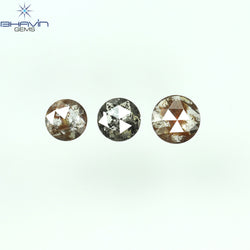 0.99 CT/3 Pcs Round Rose Cut Shape Natural Diamond Salt And Pepper Color I3 Clarity (4.90 MM)