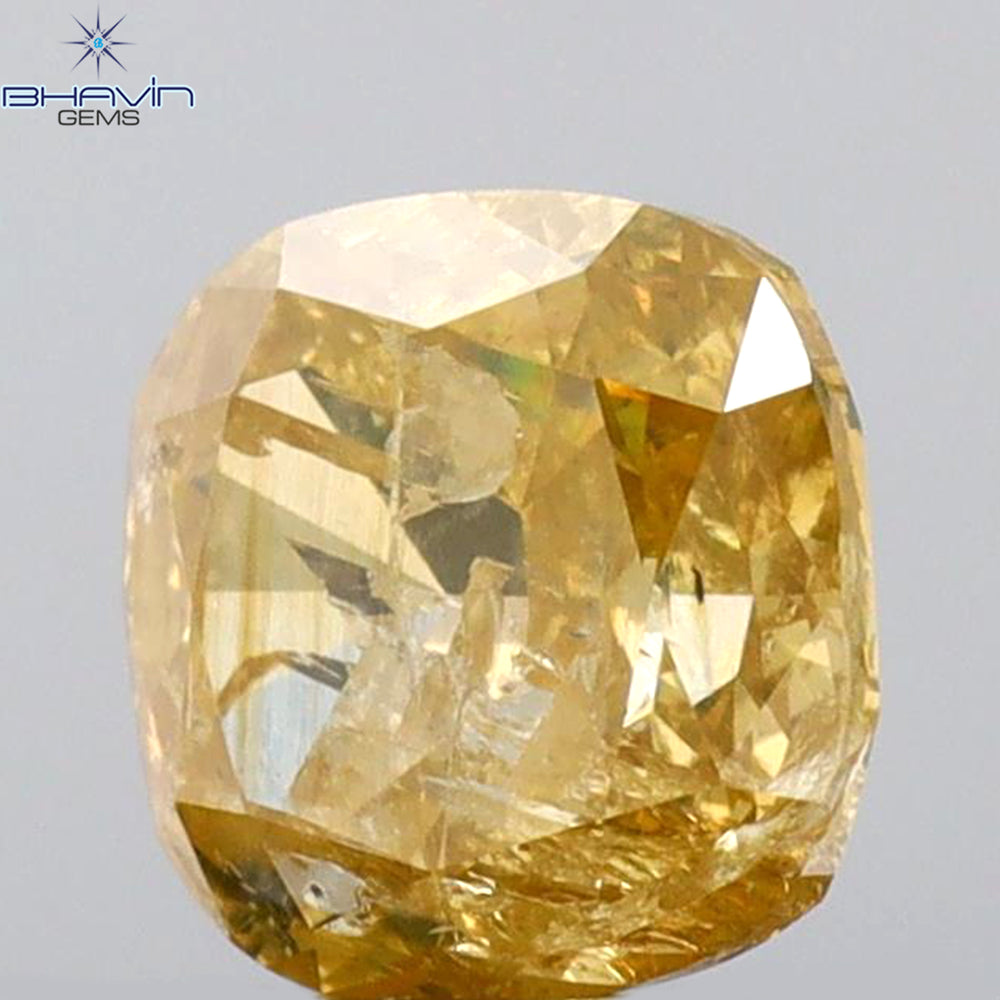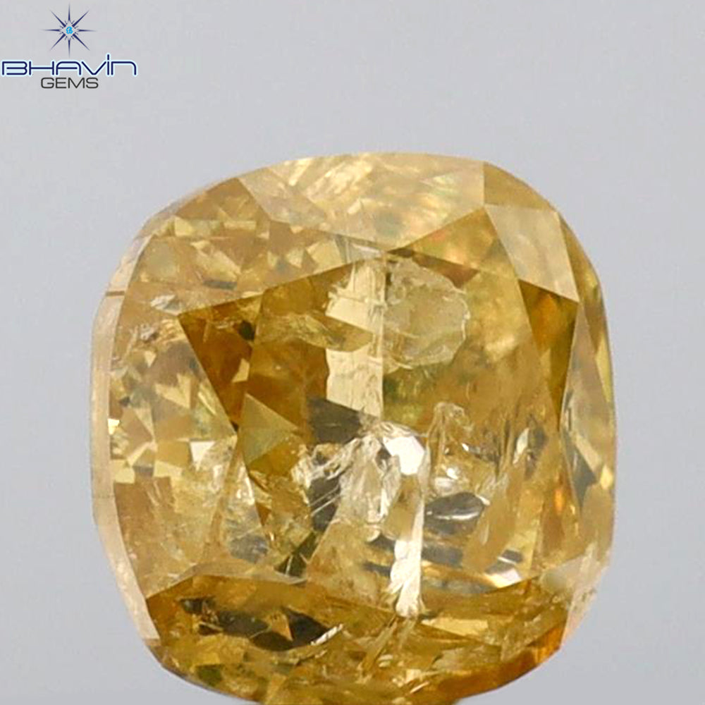 1.08 CT Cushion Shape Natural Diamond Brown Yellow Color I3 Clarity (5.71 MM)