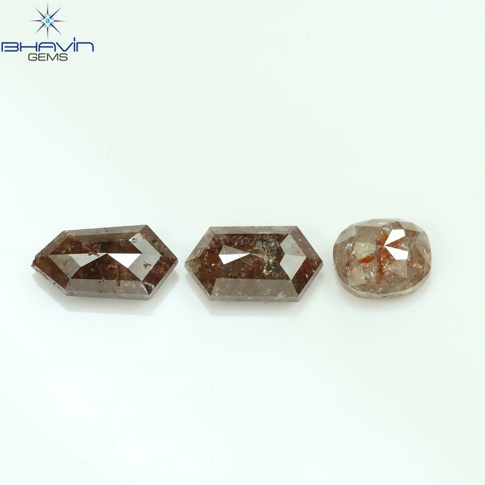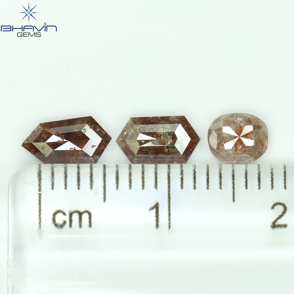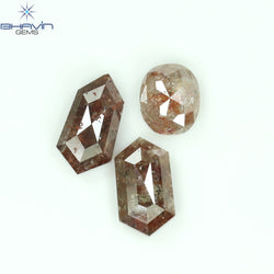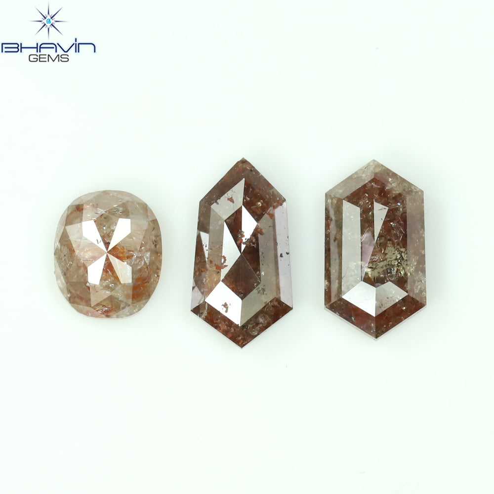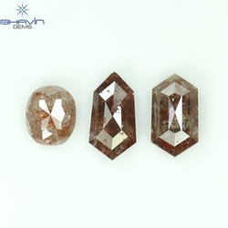 1.47 CT/3 Pcs Mix Shape Natural Diamond Peach Color I3 Clarity (7.05 MM)
