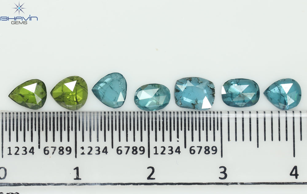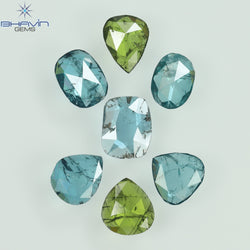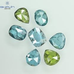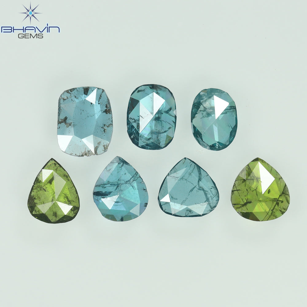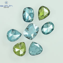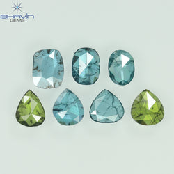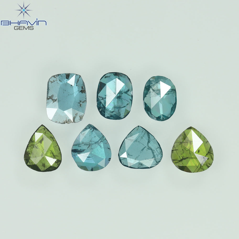 1.67 CT/7 Pcs Slice Shape Natural Diamond Blue Green Color I2 Clarity (5.65 MM)
