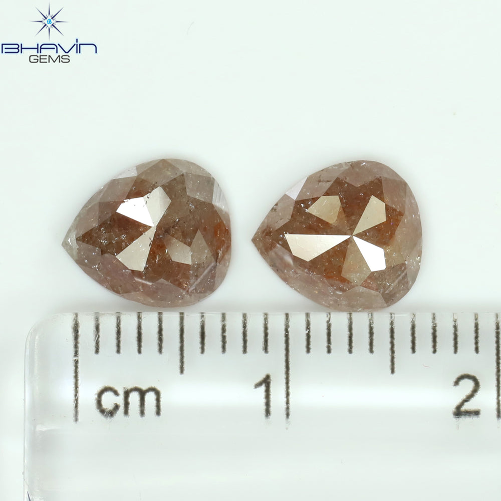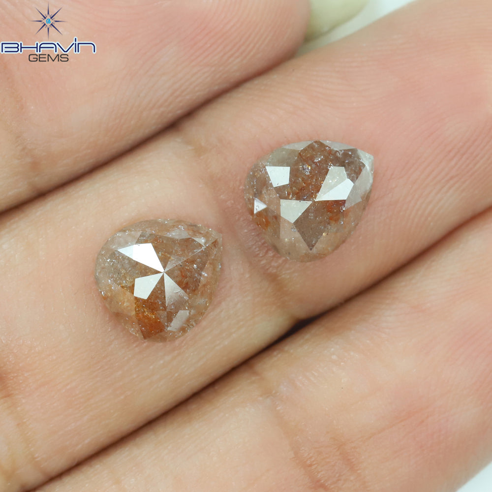2.86 CT/2 Pcs Pear Shape Natural Loose Diamond Peach Color I3 Clarity (8.13 MM)