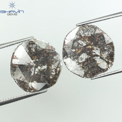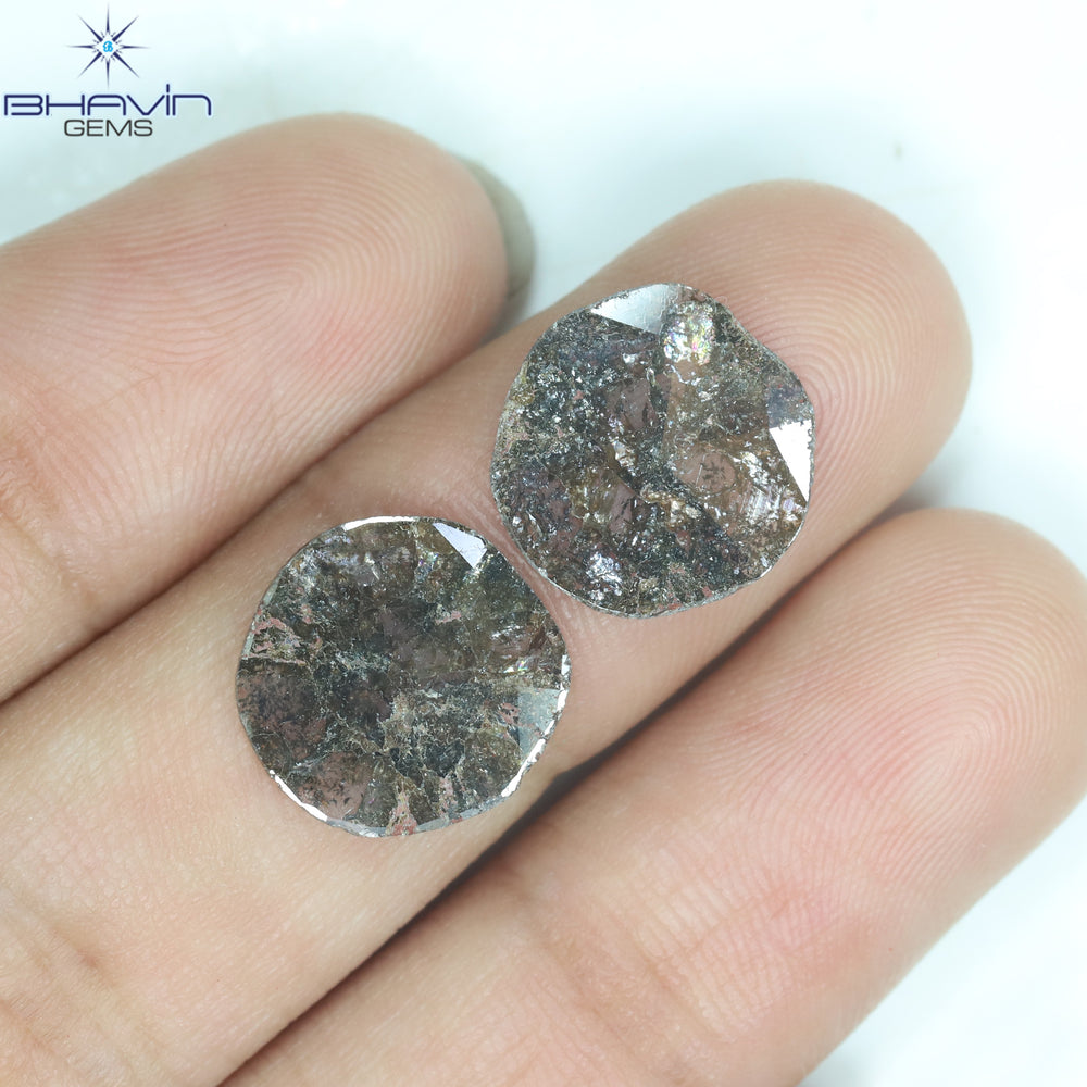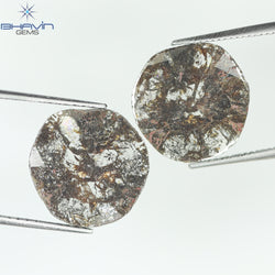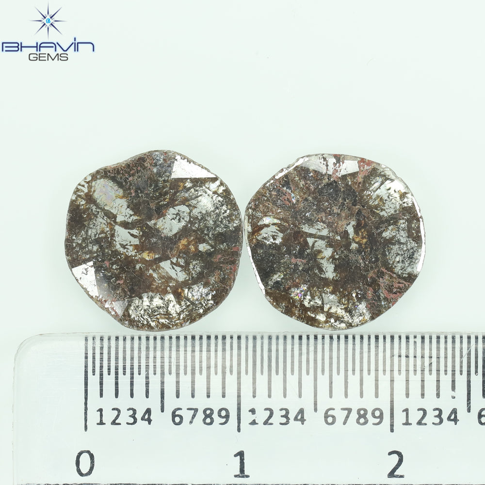 3.07 CT (2 Pcs) Uncut Slice Shape Natural Diamond Brown Color I3 Clarity (11.84 MM)