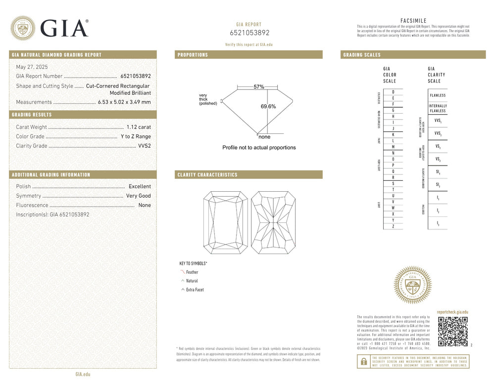 GIA Certified 1.12 CT Radiant Shape Natural Diamond Y to Z Range Color VVS2 Clarity (6.53 MM)