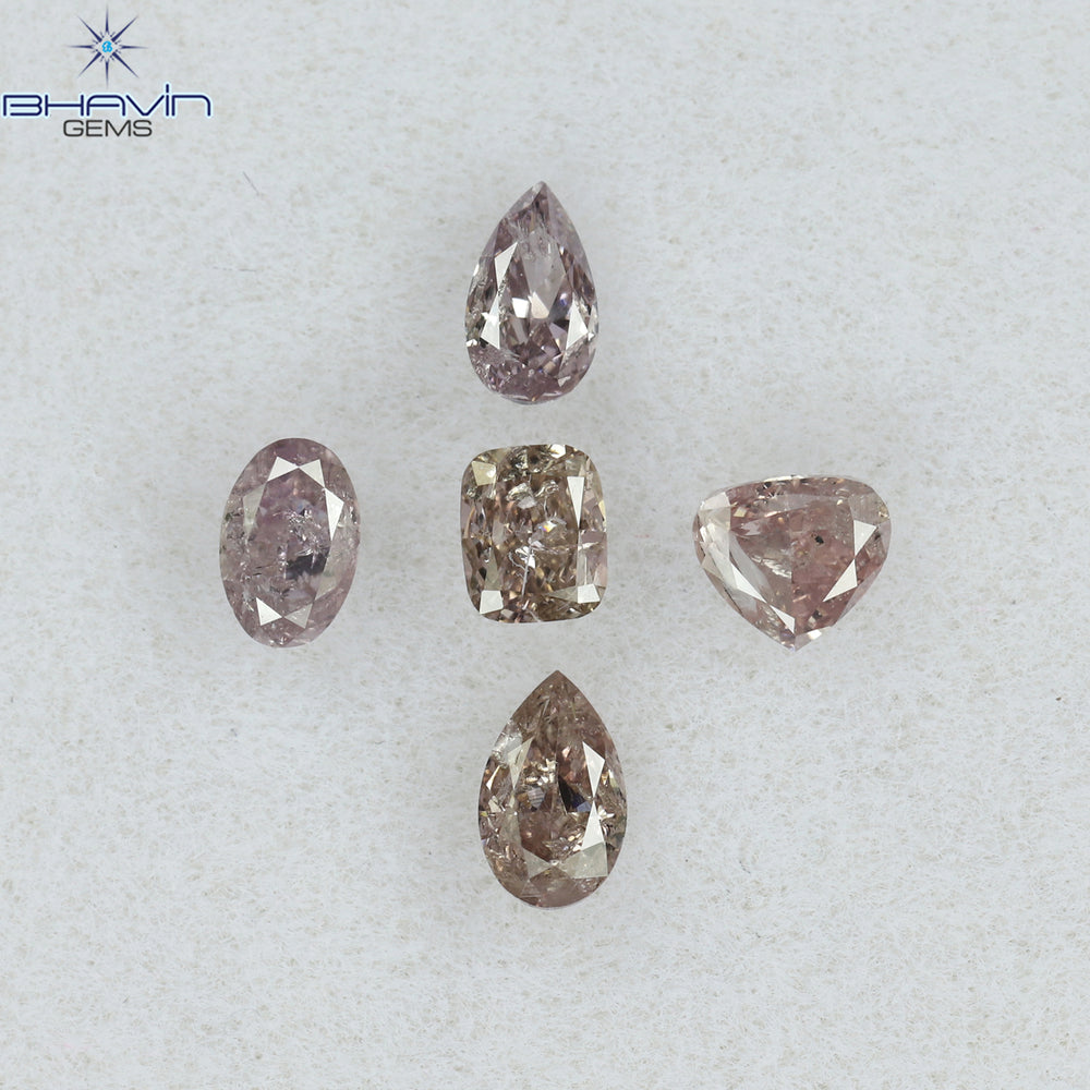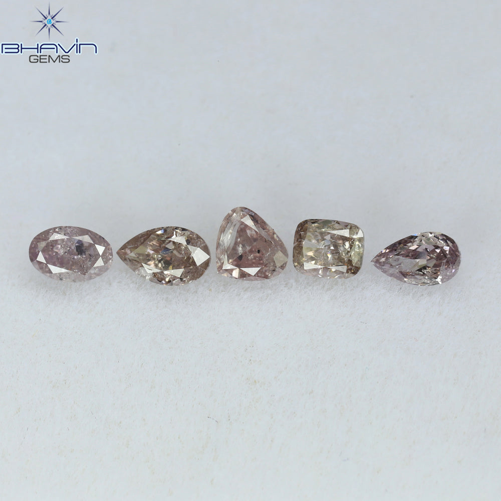0.61 CT/5 Pcs Mix Shape Natural Diamond Pink Color I1 Clarity (3.96 MM)