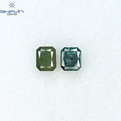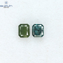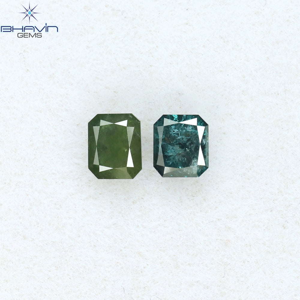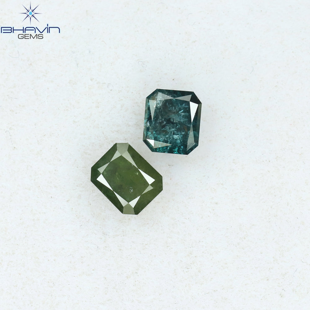 0.55 CT/2 Pcs Radiant Shape Natural Diamond Blue Green Color I3 Clarity (4.06 MM)