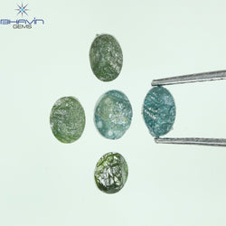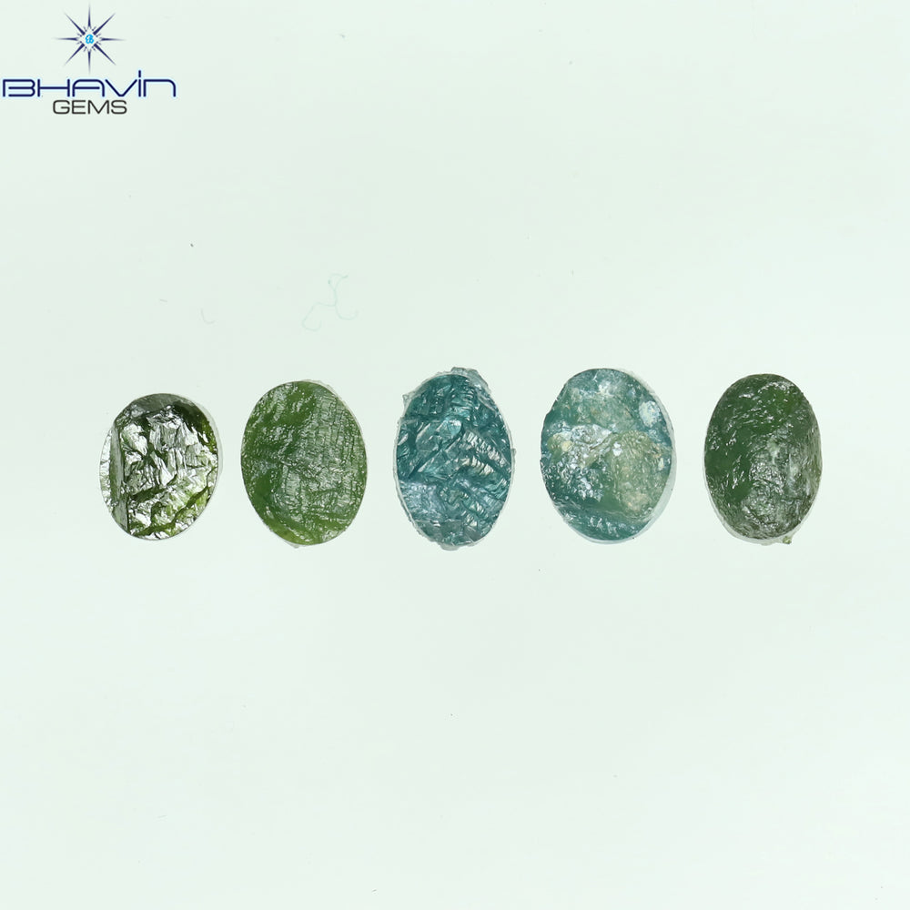 1.34 CT/5 Pcs Oval Rough Shape Green Blue Natural Loose Diamond I3 Clarity (4.60 MM)