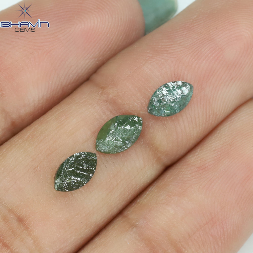 C1.04 CT/3 Pcs Marquise Rough Shape Blue Green Natural Loose Diamond I3 Clarity (6.65 MM)