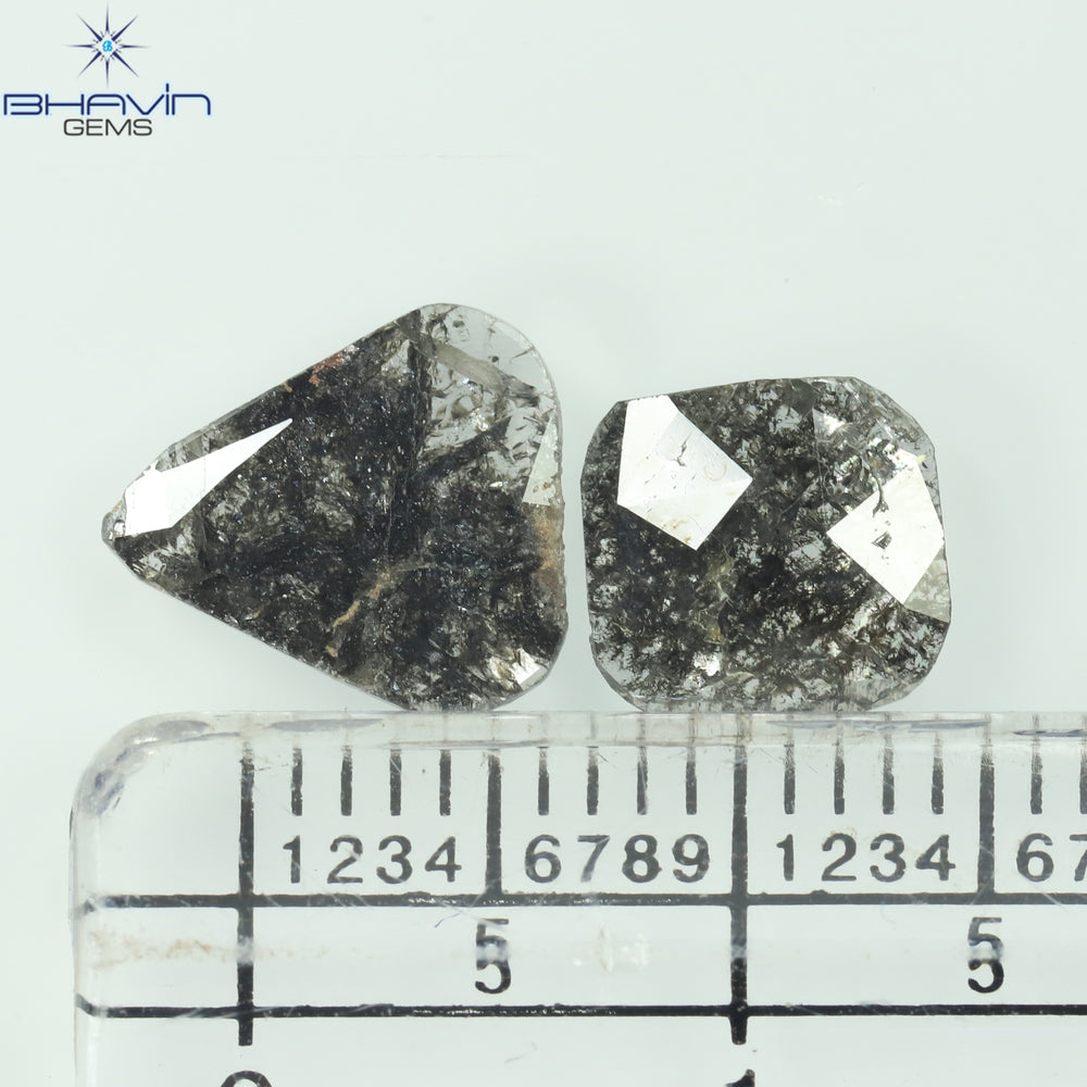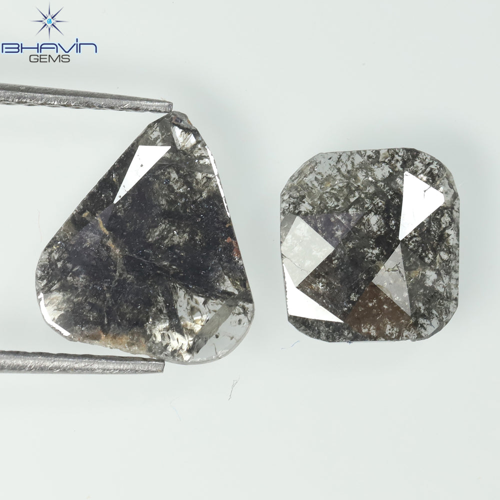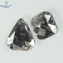 2.25 CT/2 Pcs Slice Shape Natural Diamond Salt And Pepper Color I3 Clarity (13.60 MM)