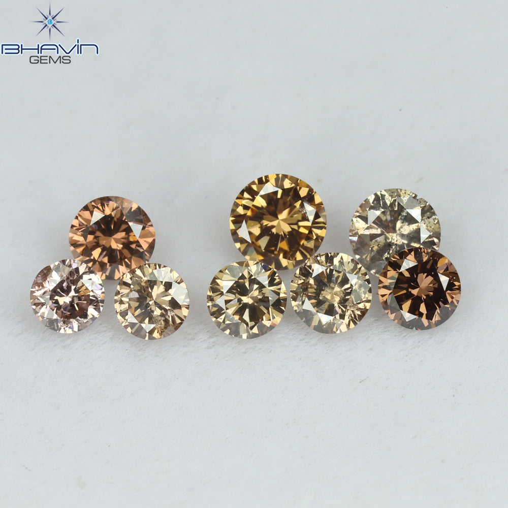0.61 CT/8 Pcs Round Shape Natural Loose Diamond Brown Pink (Argyle) Color SI Clarity (3.15 MM)
