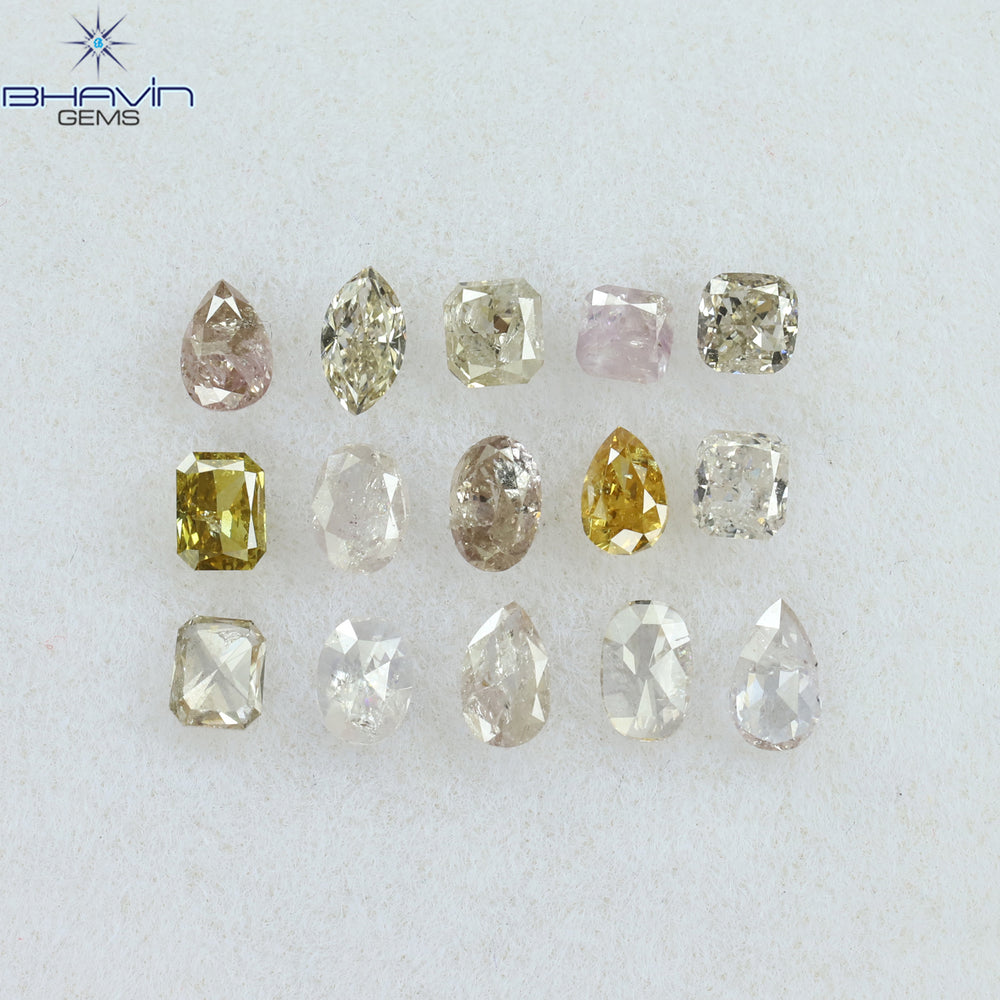1.39 CT/15 Pcs Mix Shape Natural Diamond Pink Color I2 Clarity (3.70 MM)