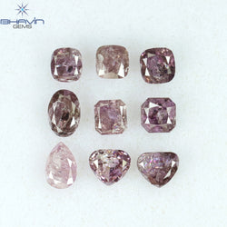 1.56 CT/9 Pcs Mix Shape Natural Diamond Pink Color I3 Clarity (4.30 MM)