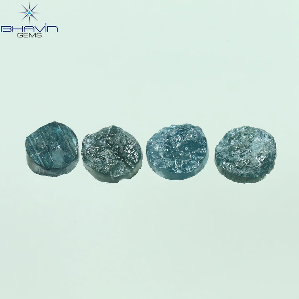 1.04 CT/4 Pcs Round Rough Shape Blue Natural Loose Diamond I3 Clarity (4.10 MM)