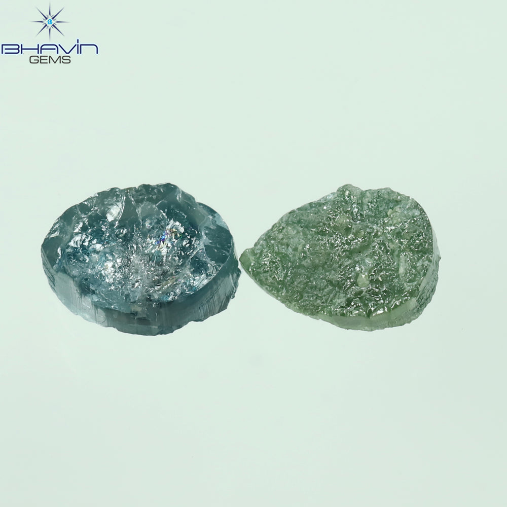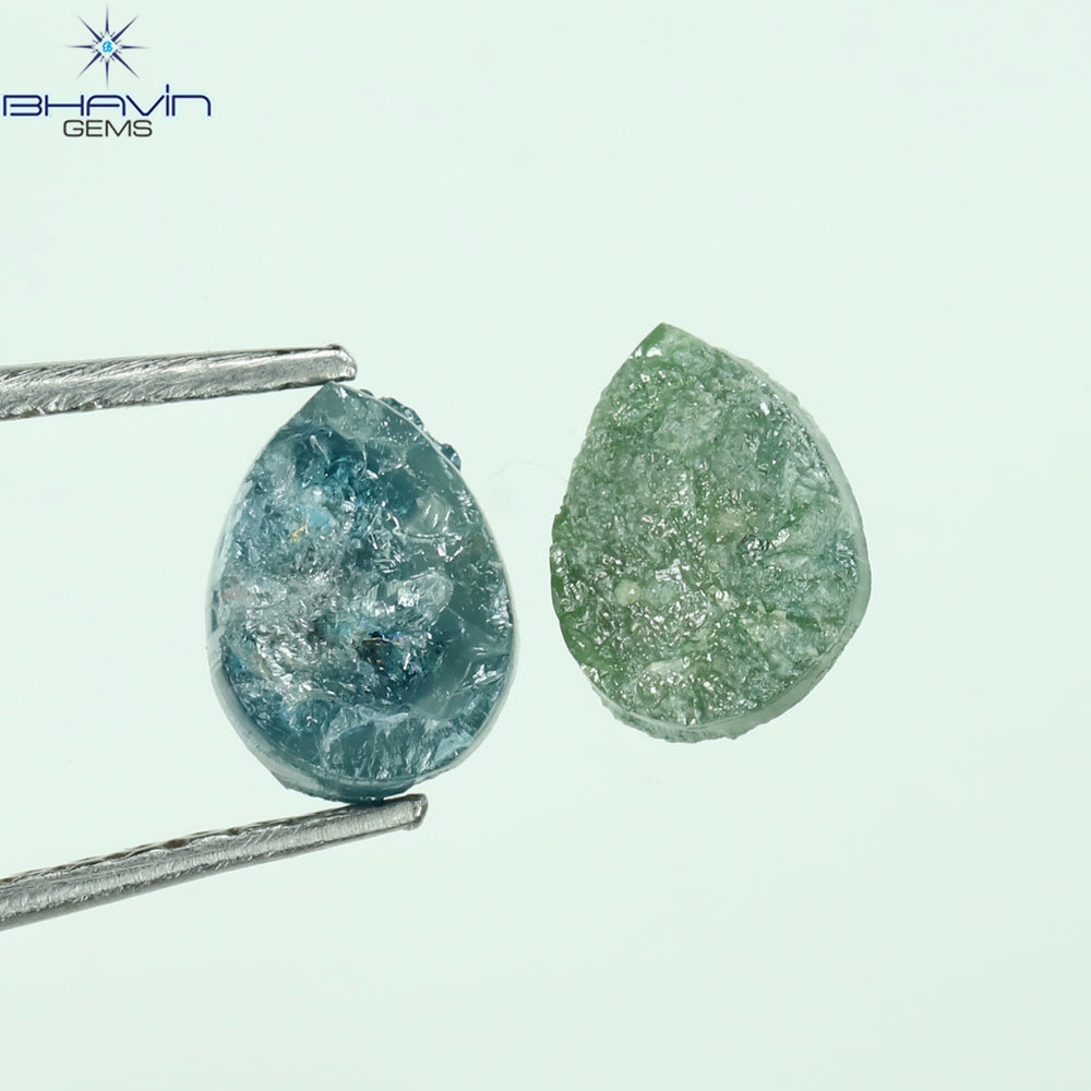 1.19 CT/3 Pcs Pear Rough Shape Blue Green Color Natural Loose Diamond I3 Clarity (6.45 MM)