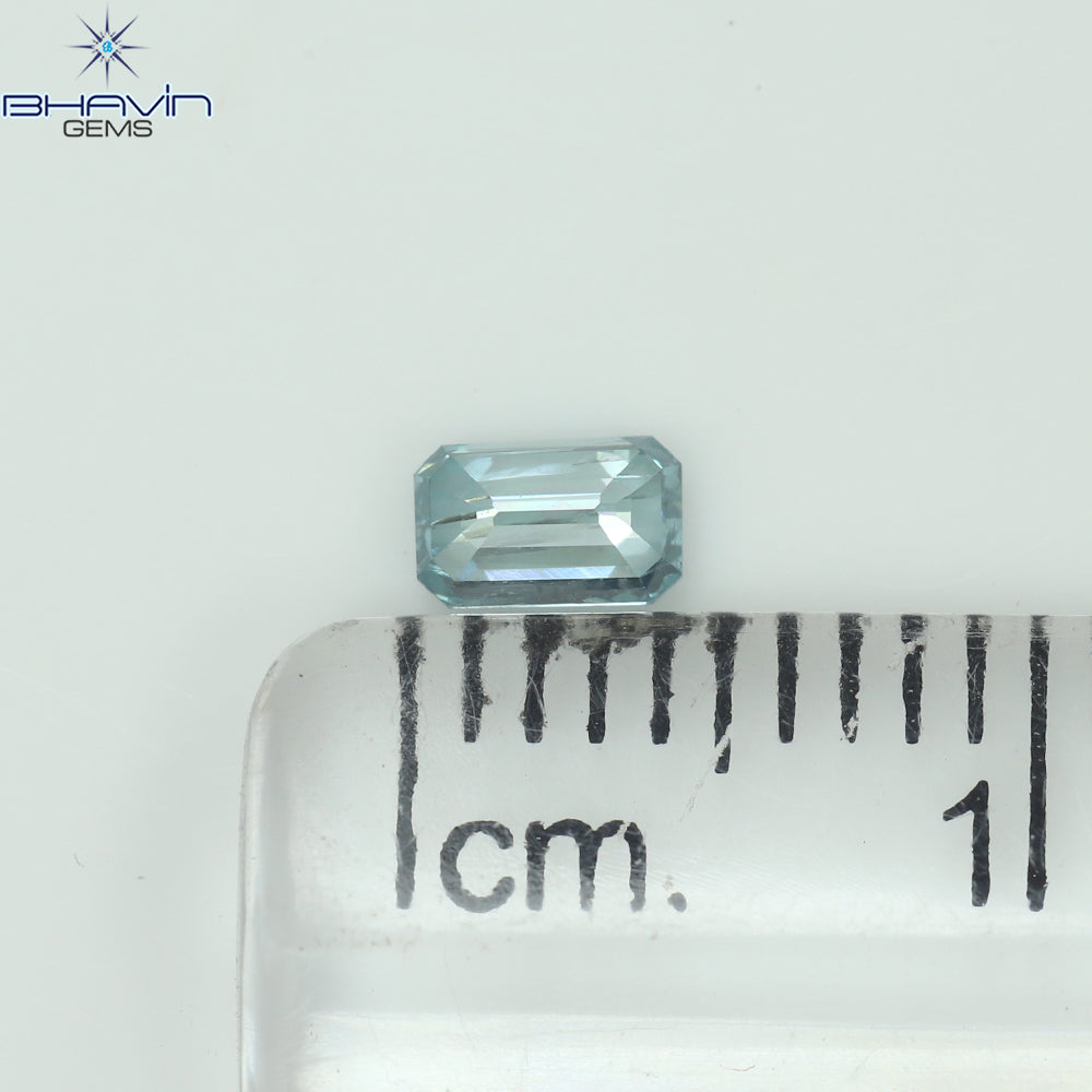 0.09 CT エメラルド シェイプ ナチュラル ダイヤモンド グリーンがかったブルー カラー VS1 クラリティ (3.58 MM)
