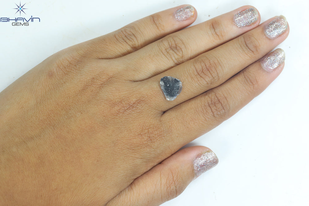 1.39 CT スライス シェイプ ナチュラル ダイヤモンド ソルト アンド ペッパー カラー I3 クラリティ (10.77 MM)